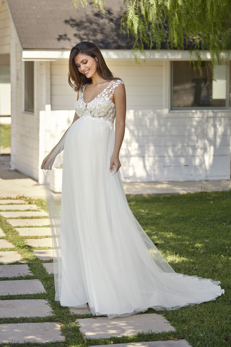 Dann ist ein Umstandsbrautkleid die richtige Wahl für Dich.