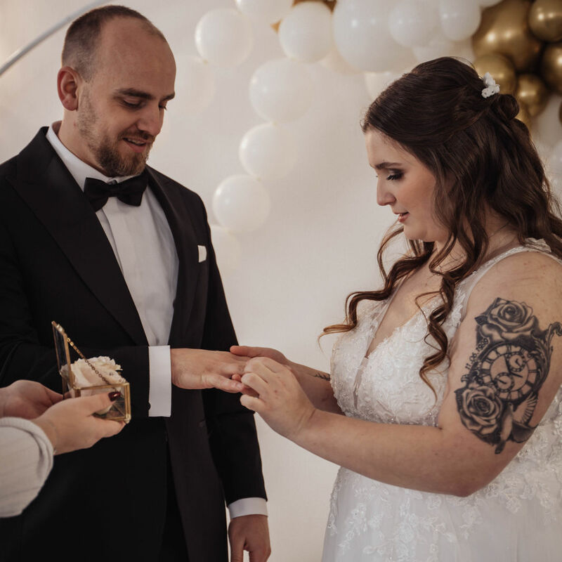 Fotografie: Jessi Fotoliebe | Location: Novaxevent| Hochzeitsplanung: Einmalige Hochzeitsplanung | Dekoverleih: Happily Ever After | Styling: MakeUp by MG | Torte: Emba Emilia | Traubogen: Nicoles Ballonträume