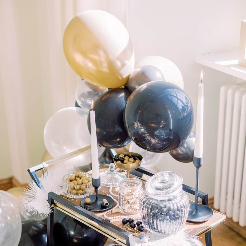 Location: Schloss Kröchlendorf Fotografie: Miriam Kaulbarsch Torte: Konditorei W | Dekoration: happilyeverafter | Floristik und Ballons: Tüll und Tassel | Papeterie: lieblingsschnipsel | Styling: La dolce vita | Schmuck: Sternauge | Anzug: xuits | Traurednerin: redseelig | Sweets: Dropje Lekker Lakritz | Bar: Drivebar Berlin | Model: Viola | Band: The Swingin Pops | Stühle: in.saus.und.braus